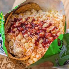 chips flamin hot poricon de esquites, crema , mayonesa , quesos rayalld . queso amarillo ,salsas , limon