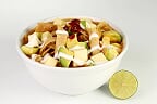 CUBOS DE PAPA Y RES, LECHUGA, ZANAHORIA,PEPINO, AGUACTE, QUESO RAYADO, TOMATE, ACOMPAÑADO DE CONSOME DE RES
