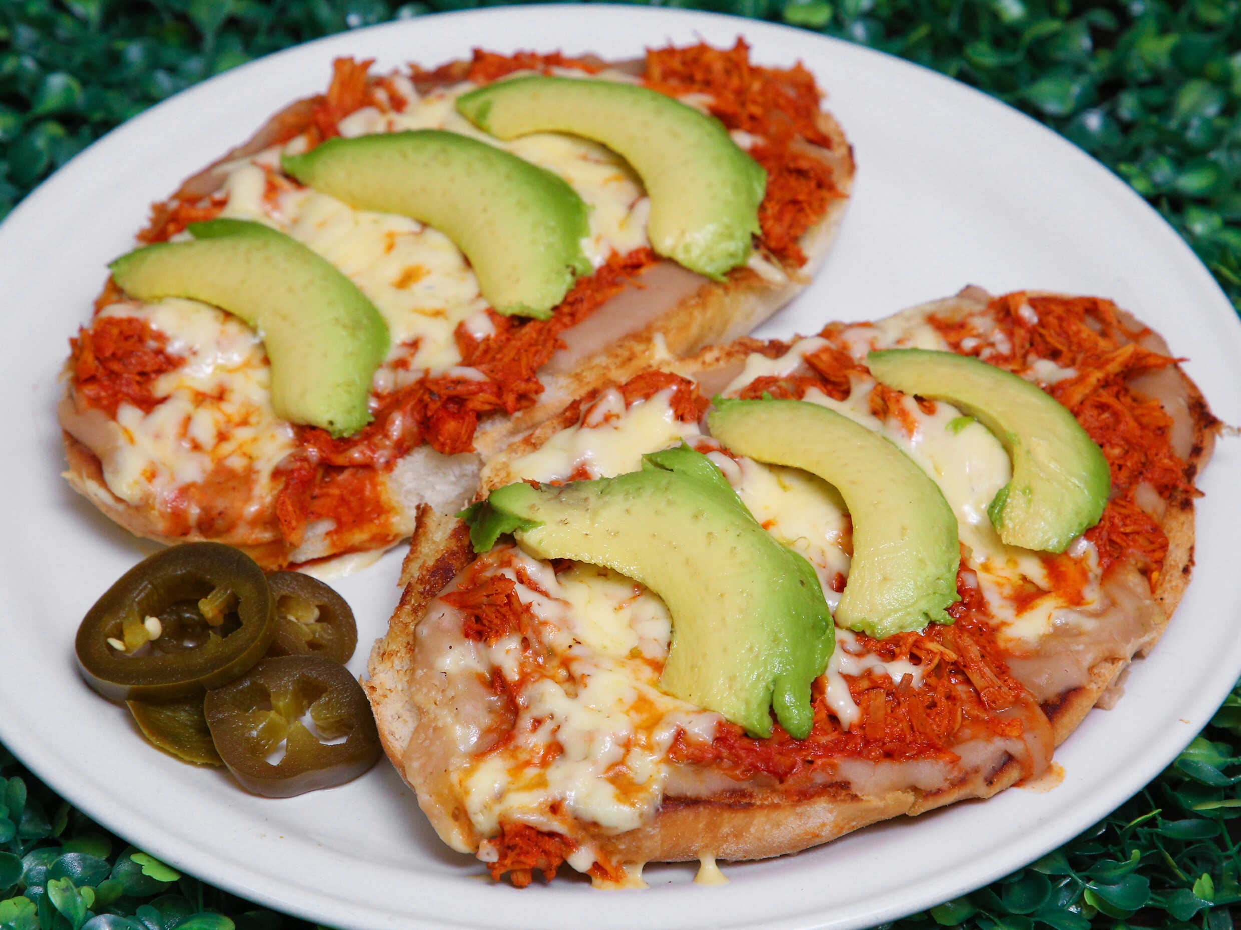 PAN CON FRIJOLES, COCHINITA Y QUESO GRATINADO
