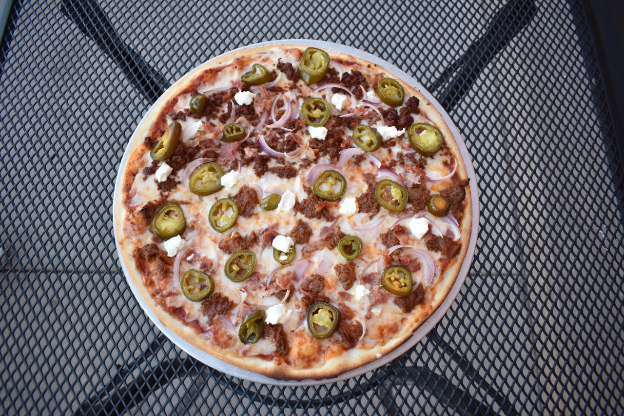 Chorizo tocino, cebolla, morada, jalapeño y parmesano rallado.