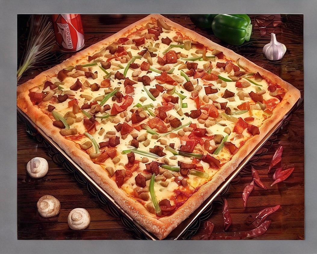 Rica Pizza artesanal con 20 Pzas. con 1 ingrediente a elegir tamaño 50x35 (Pizza familiar)