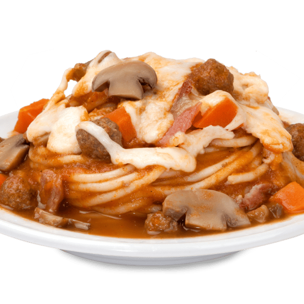 Pizza de jamón, salami, champiñón, queso, pimiento verde, tamaño a elección.