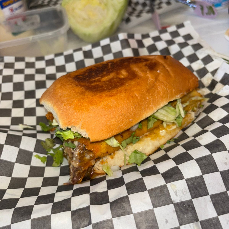 Torta encostrada de birria