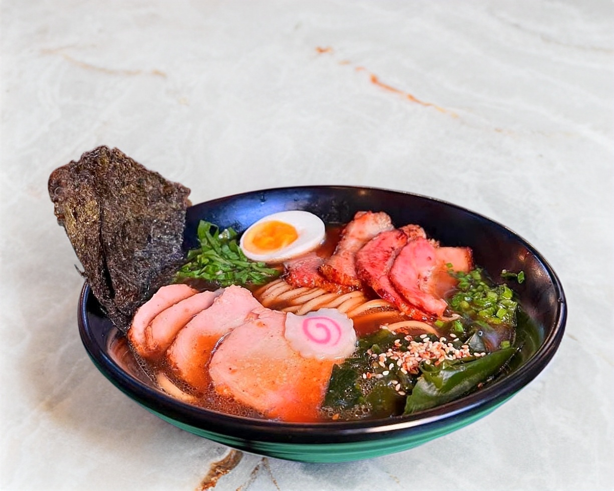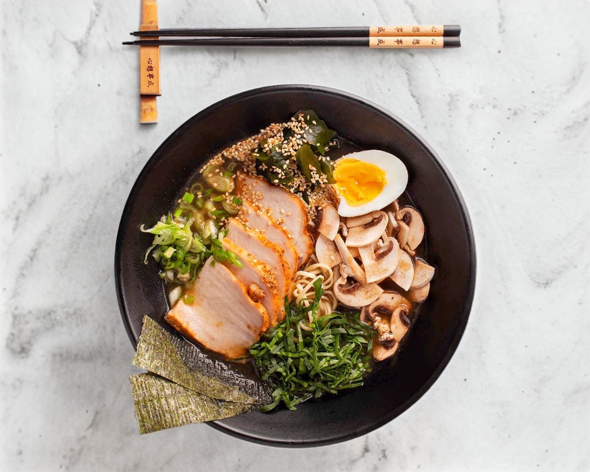 Ramen 30oz. Lomo de cerdo ahumado, champiñon, alga wakame