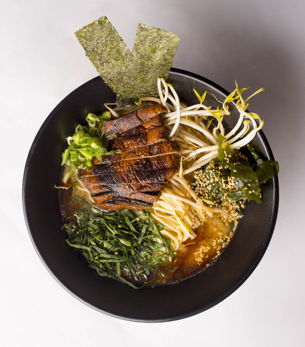 Ramen 30oz.frijolillo, caldo miso, portobello asado, aceite ajo negro.