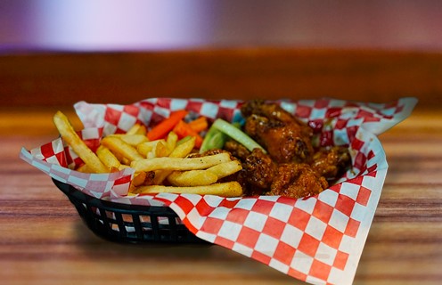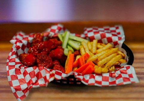 Alitas fritas, acompañadas de bastones de vegetales y salsa a tu elección.