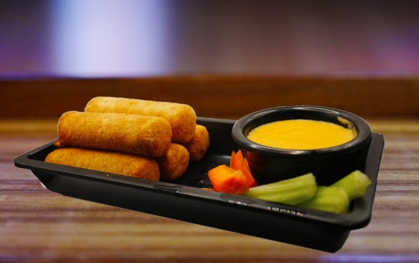 250 gr De bastones de queso cheddar, acompañados de bastones de zanahoria.