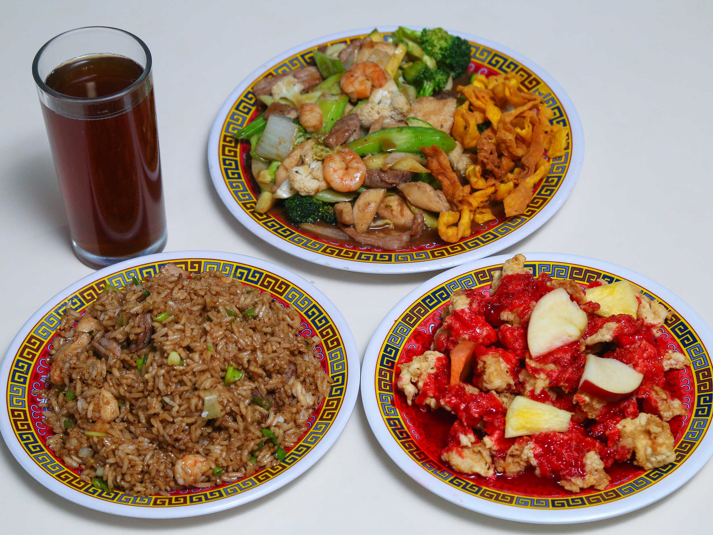 1 Arroz frito especial, 1 chow mein especial, 1 pollo agridulce y 2 litros de té.