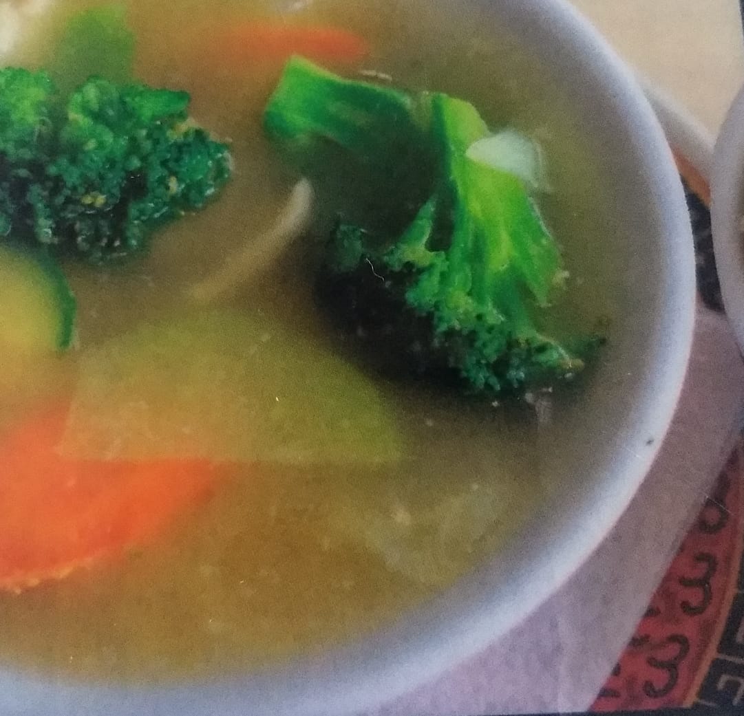 Todos los vegetales, con condimentos y salsa soya, acompañada de arroz blanco.