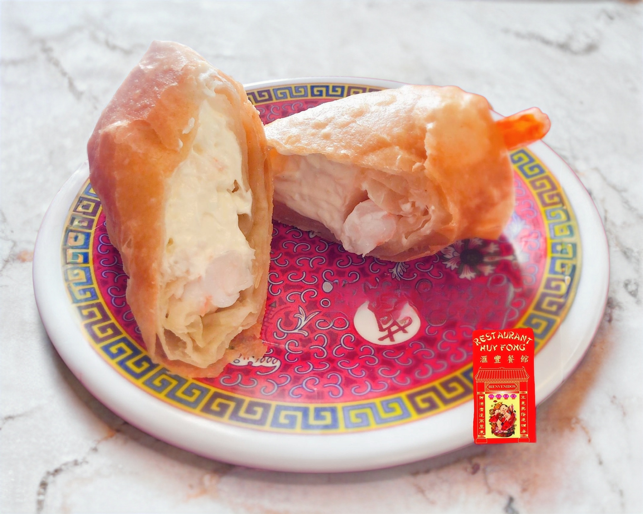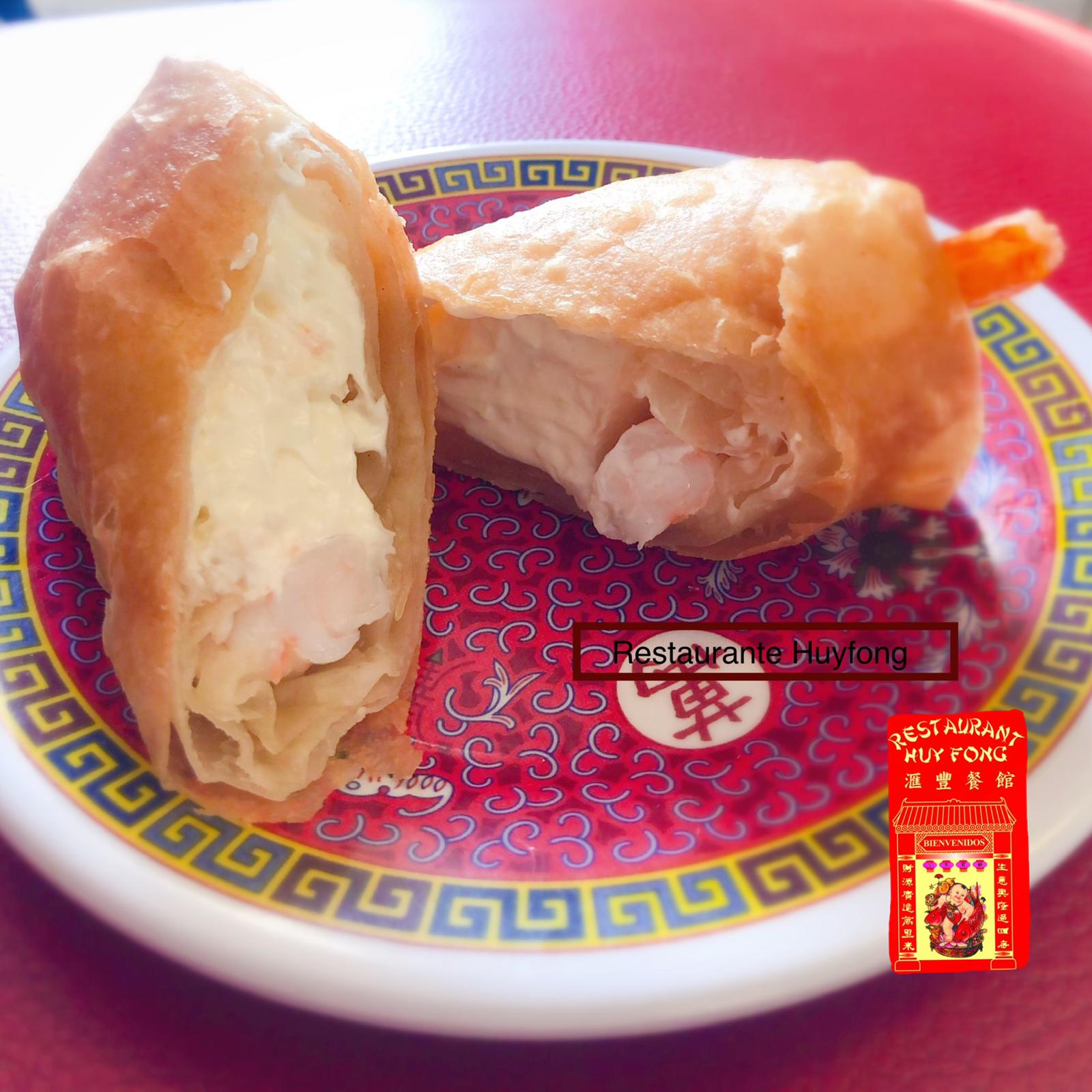 Rollo de camarón con queso Philadelphia.