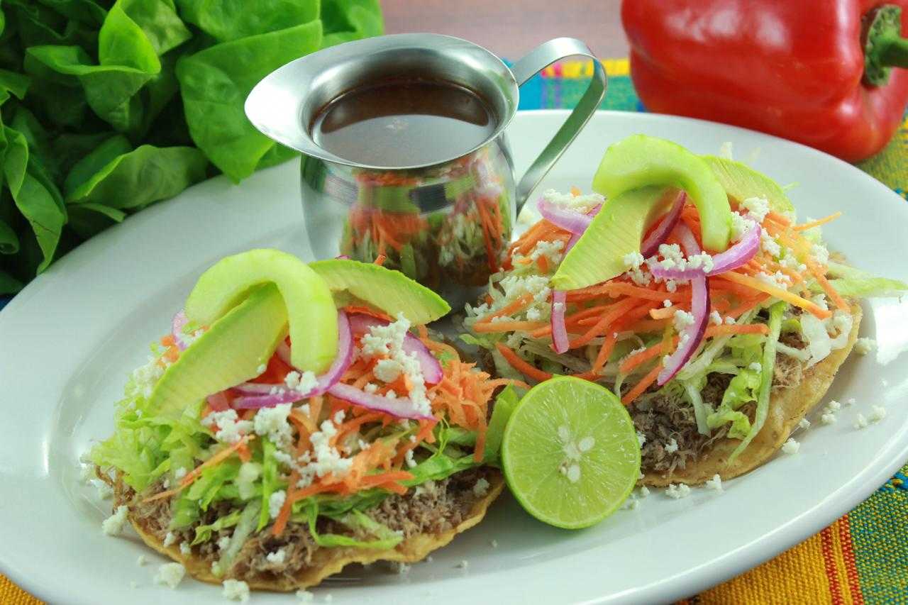 Combo de 3 tostadas de res o pollo + agua de sabor de 500 ml.