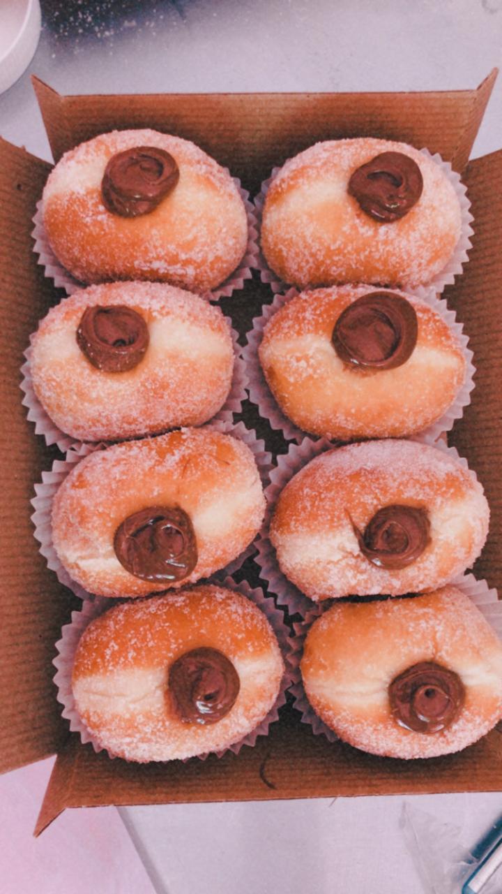 Berlinesa rellena de Nutella y espolvoreado de azúcar.