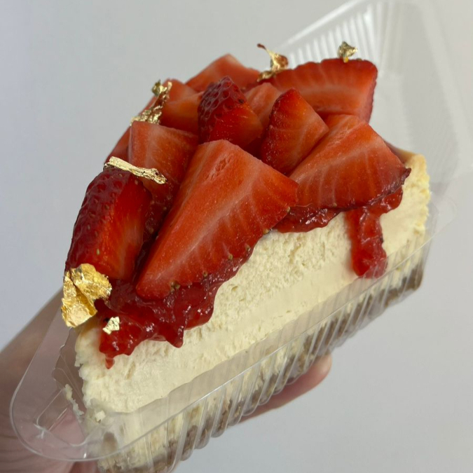 Deliciosa rebanada de cheese cake con fresa fresca.