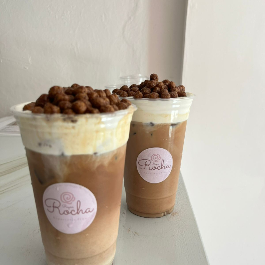 cafe con sabor a chocolate, con cold foam y cerel cocoa puff.