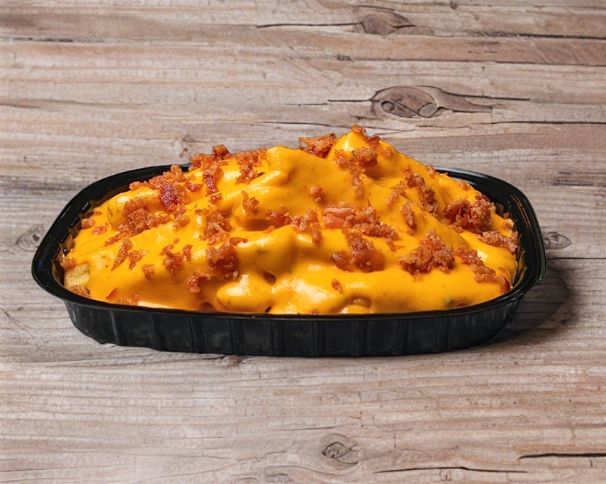 Papas fritas bañadas en aderezo de queso spicy y tocino.