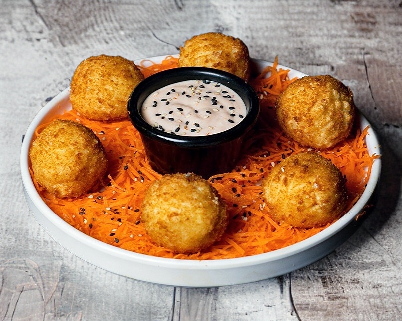 Bolitas de queso empanizadas con queso manchego y philadelphia.