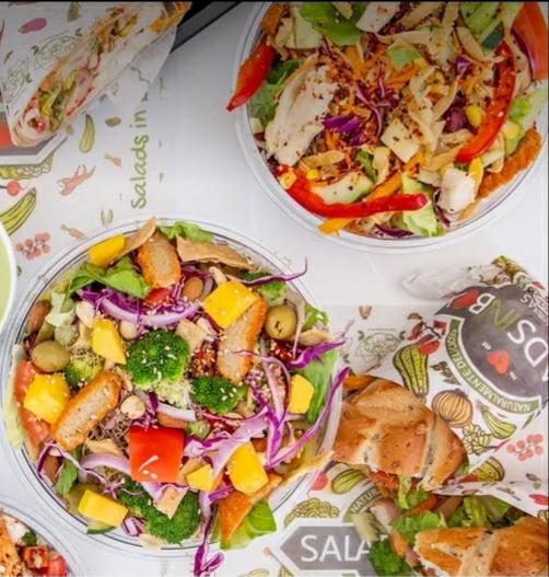 1 Ensalada grande ( Base de lechuga + 5 Vegetales + 2 Proteinas + Aderezo (a elegir) + Toppings (a elegir) + 1 Pannini o Wrap basico + Papas + 2 Bebidas