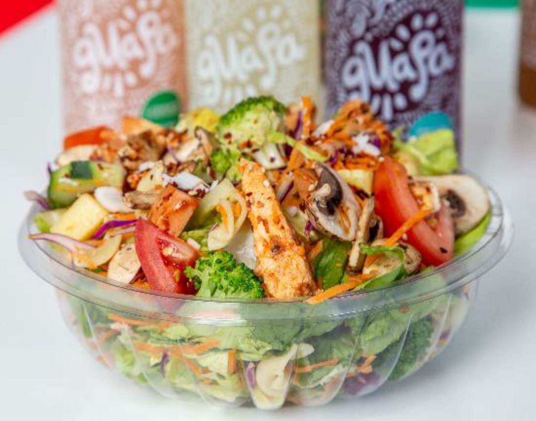 Base de lechuga + 4 vegetales (a elección) + 1 proteína (a elección)+ Aderezo (a elección) + Toppings incluidos (a elegir)