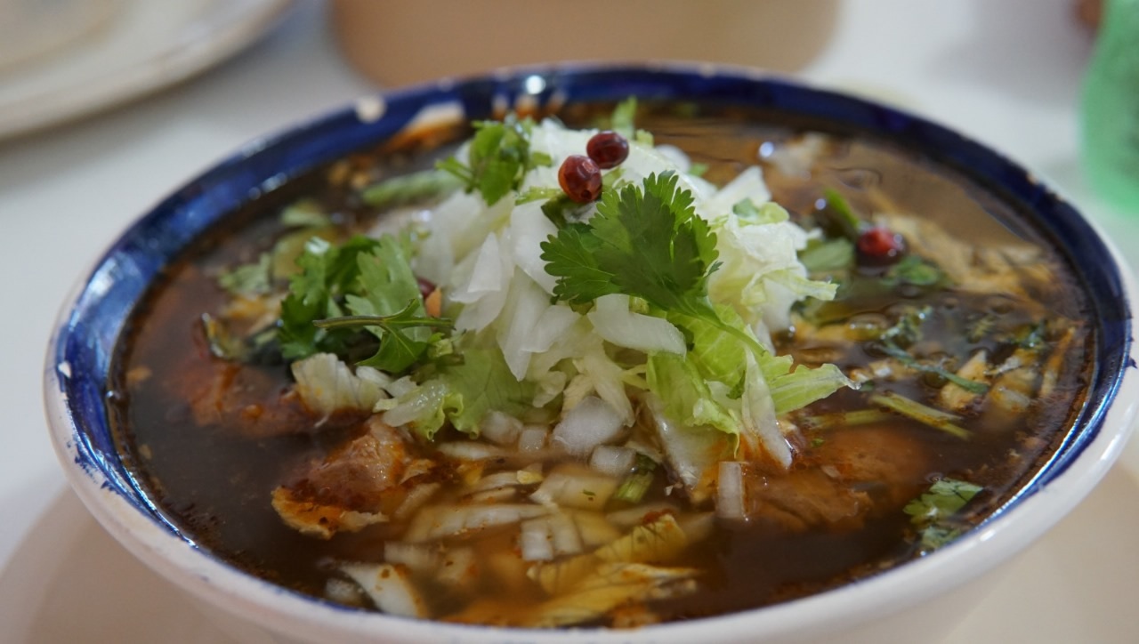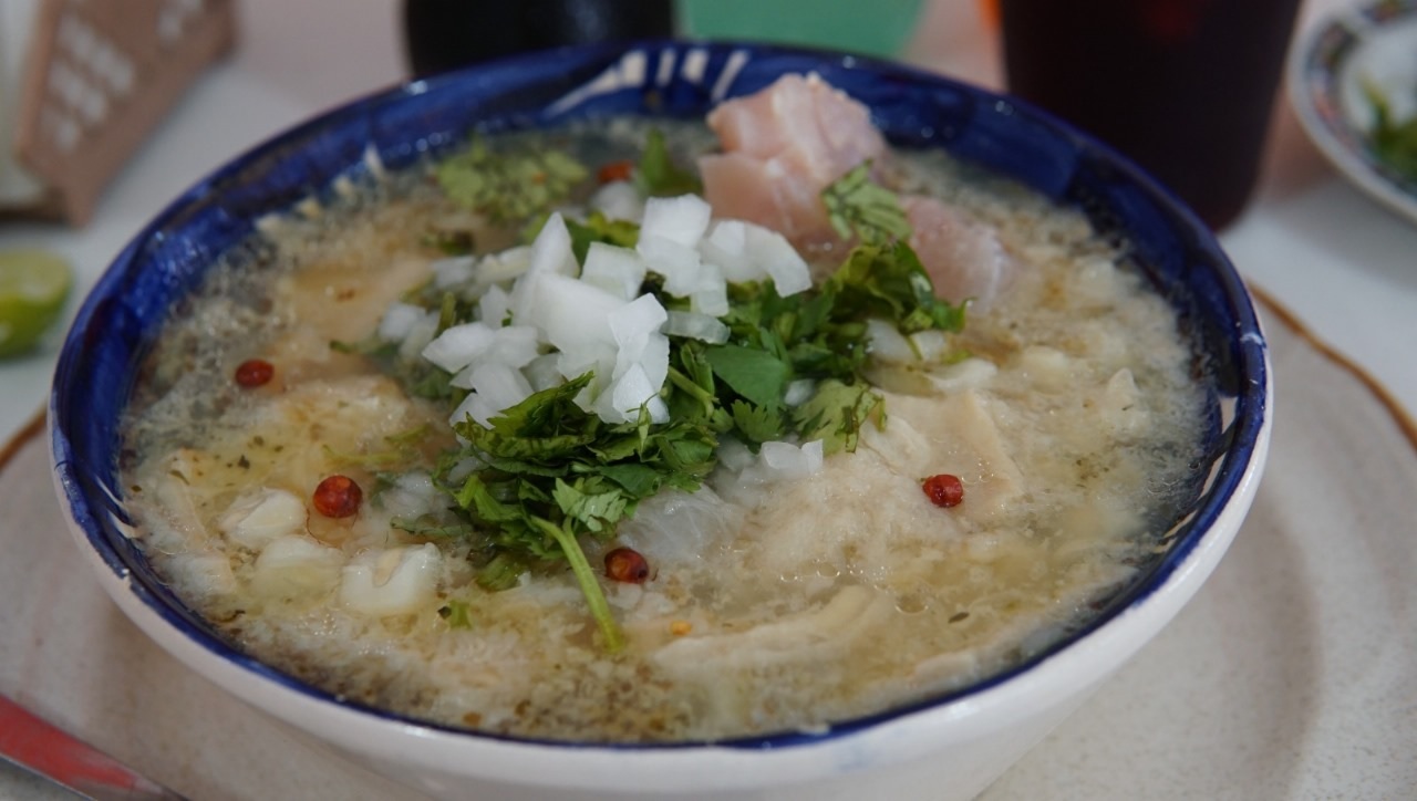 Menudo blanco tradicional sinaloense de panza de res y grano de maíz (orden de litro).
