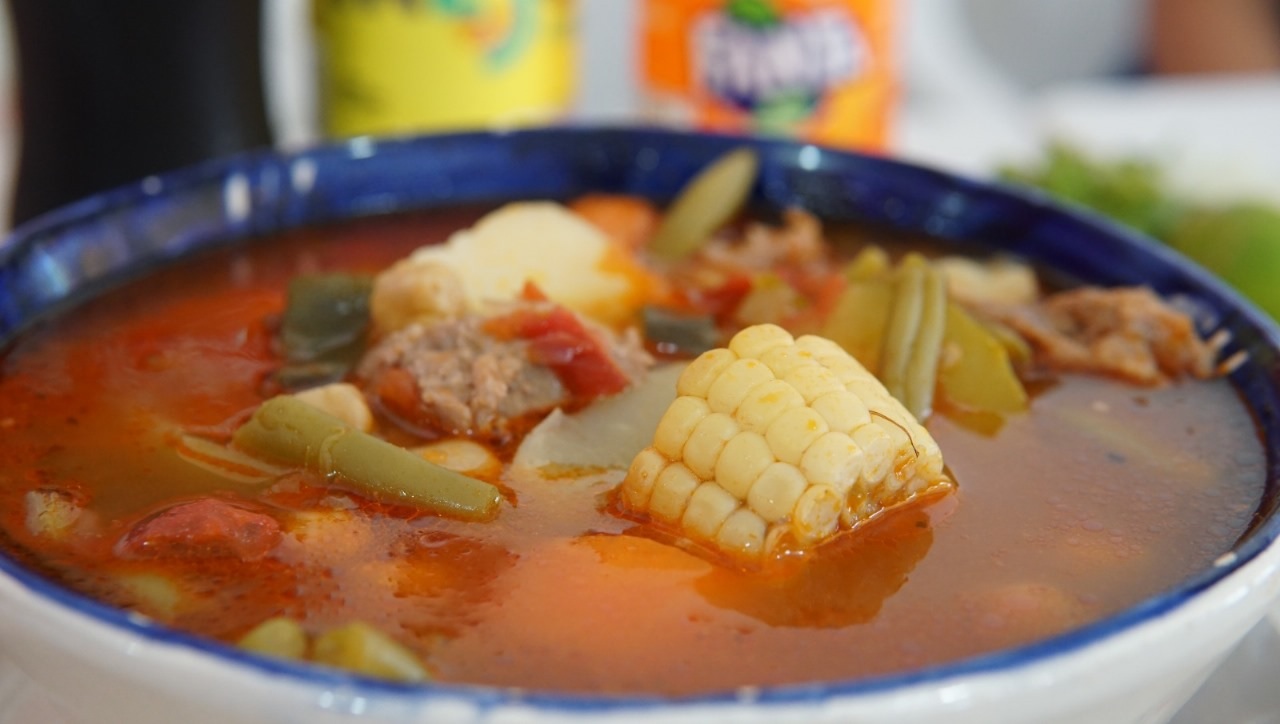 Caldo de res, garbanzo, elite, calabaza, papa, zanahoria, ejotes (orden de litro).