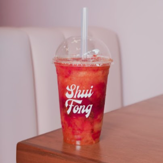Frappe sabor fresa, dulce y refrescante.