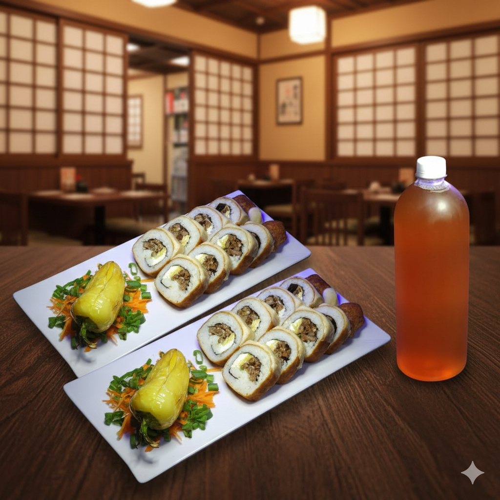 alga por fuera, por dentro camaron,aguacate, pepino y surimi empanizado, por fuera kanikama spicy, phila y ajonjoli