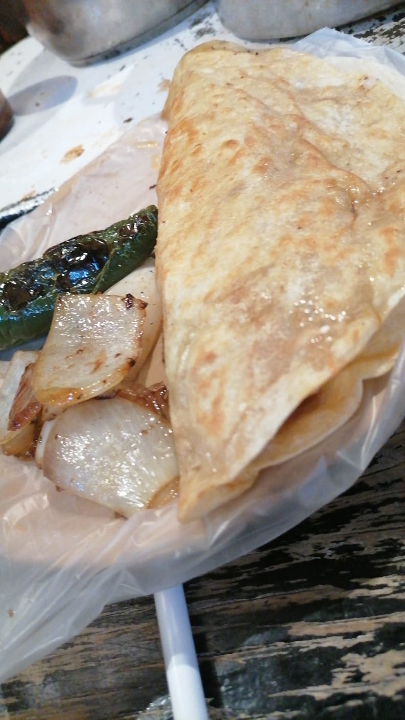 Tortilla grande de harina con queso acompañado de carne a escoger.