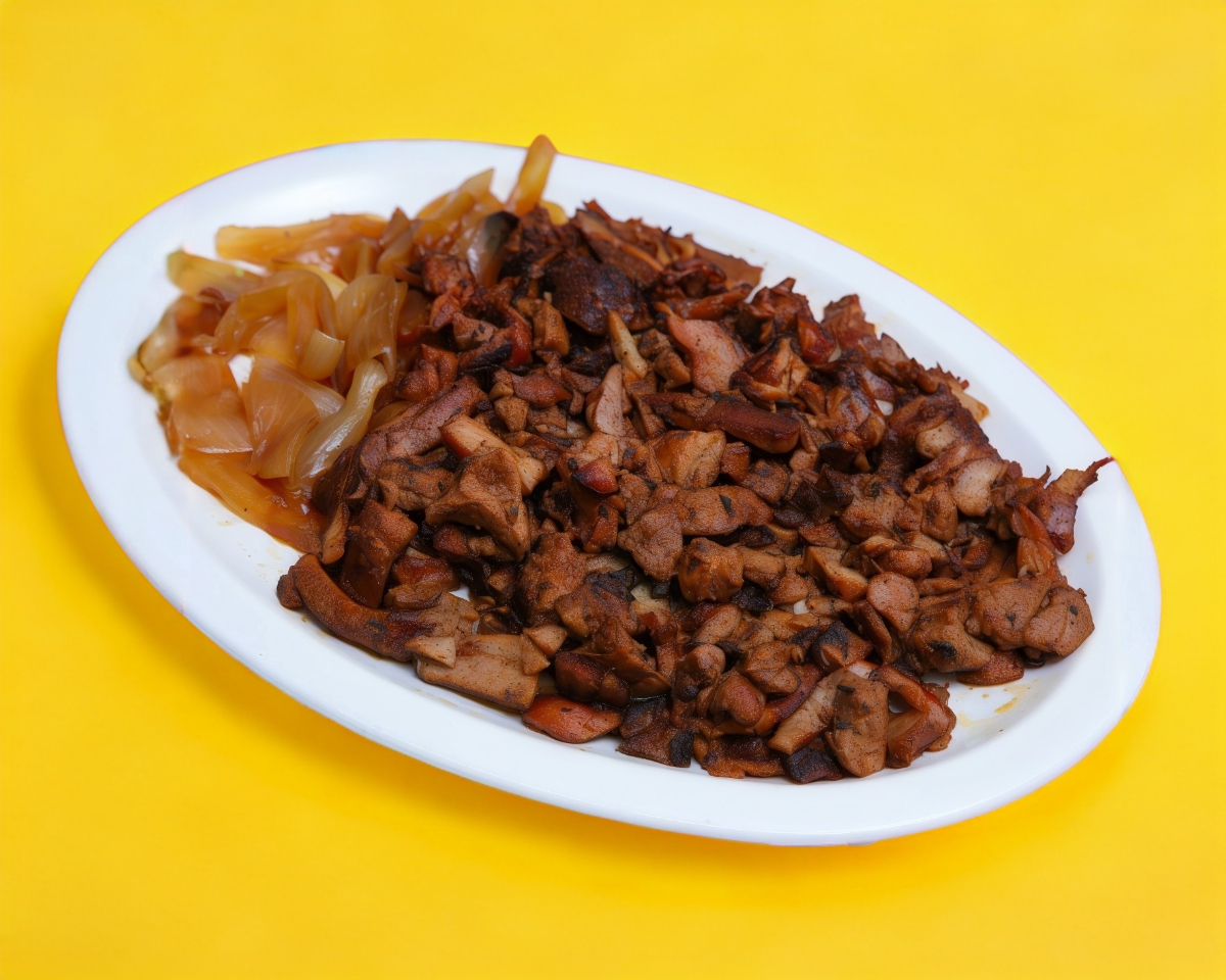 Orden de carne ( carne al pastor picada equivalente a 6 tacos, con repollo, Cebolla morada, limón y tortilla suaves).
