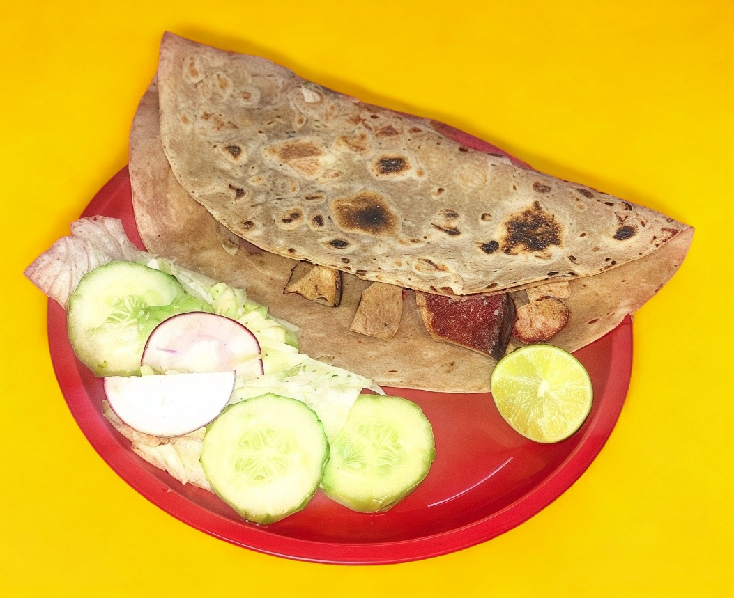Una quesadilla solita, sin carne, sin nada por dentro, pero con un gran sabor a queso