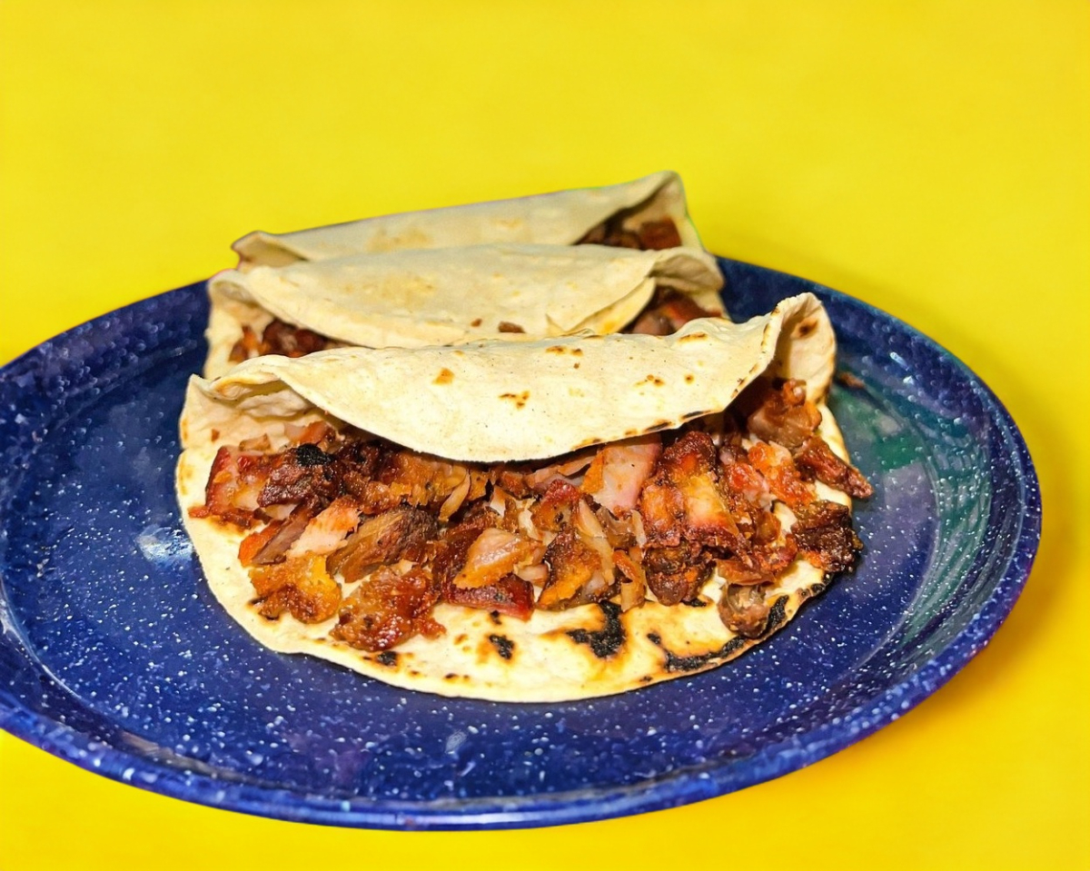 El tradicional y sinaloense, exquisito taco de la carne que elijas, con frijolito, cebolla, jugo de tomate y salsita verde.