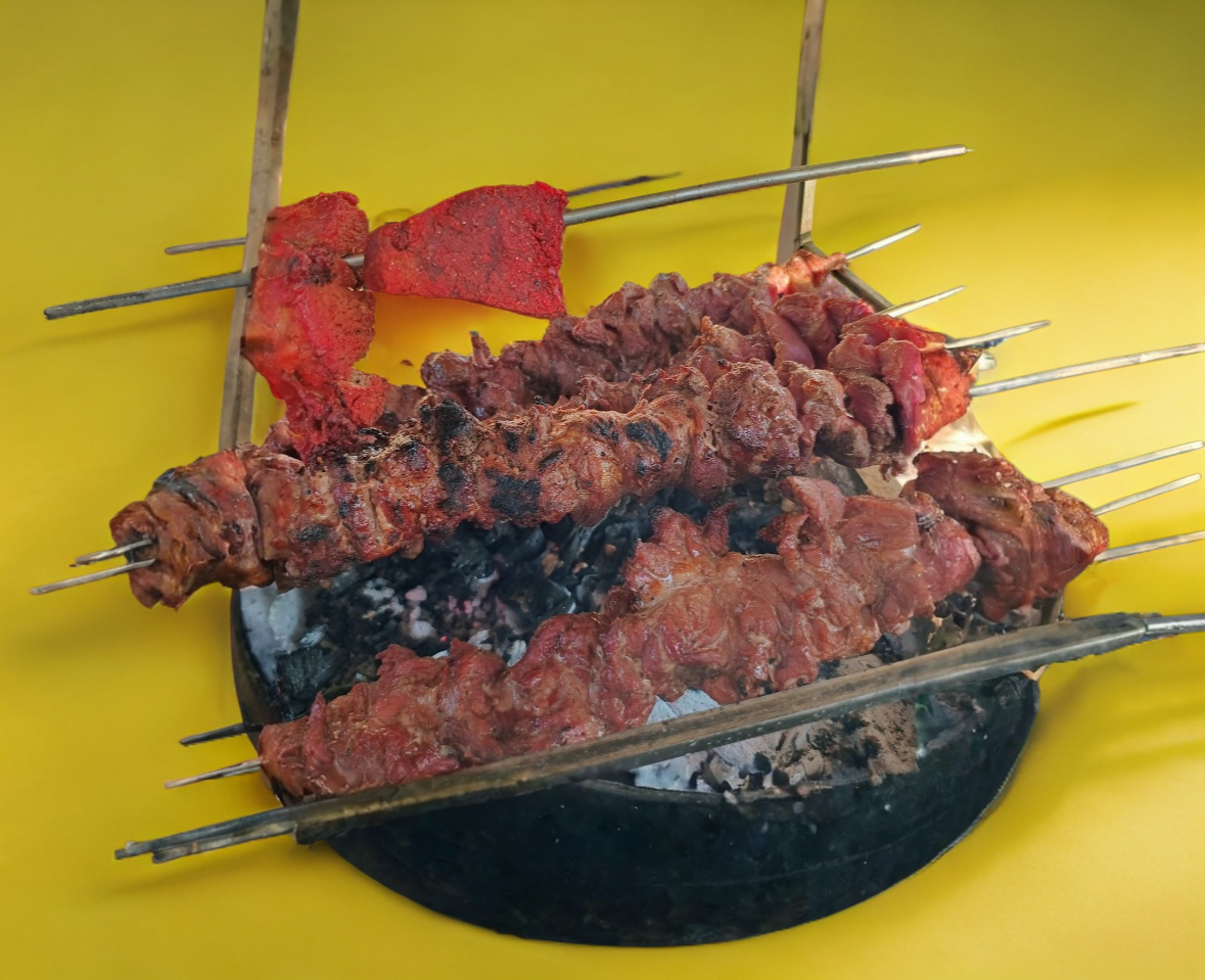 De carnita asada con ubre o tripa o lo que quieras como quieras, con frijolito, cebolla, jugo de tomate y salsita verde