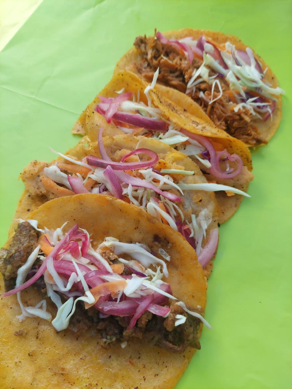 Acompañados de Salsa Casera,Repollo fresco,Cebolla morada,Serrano y Limon