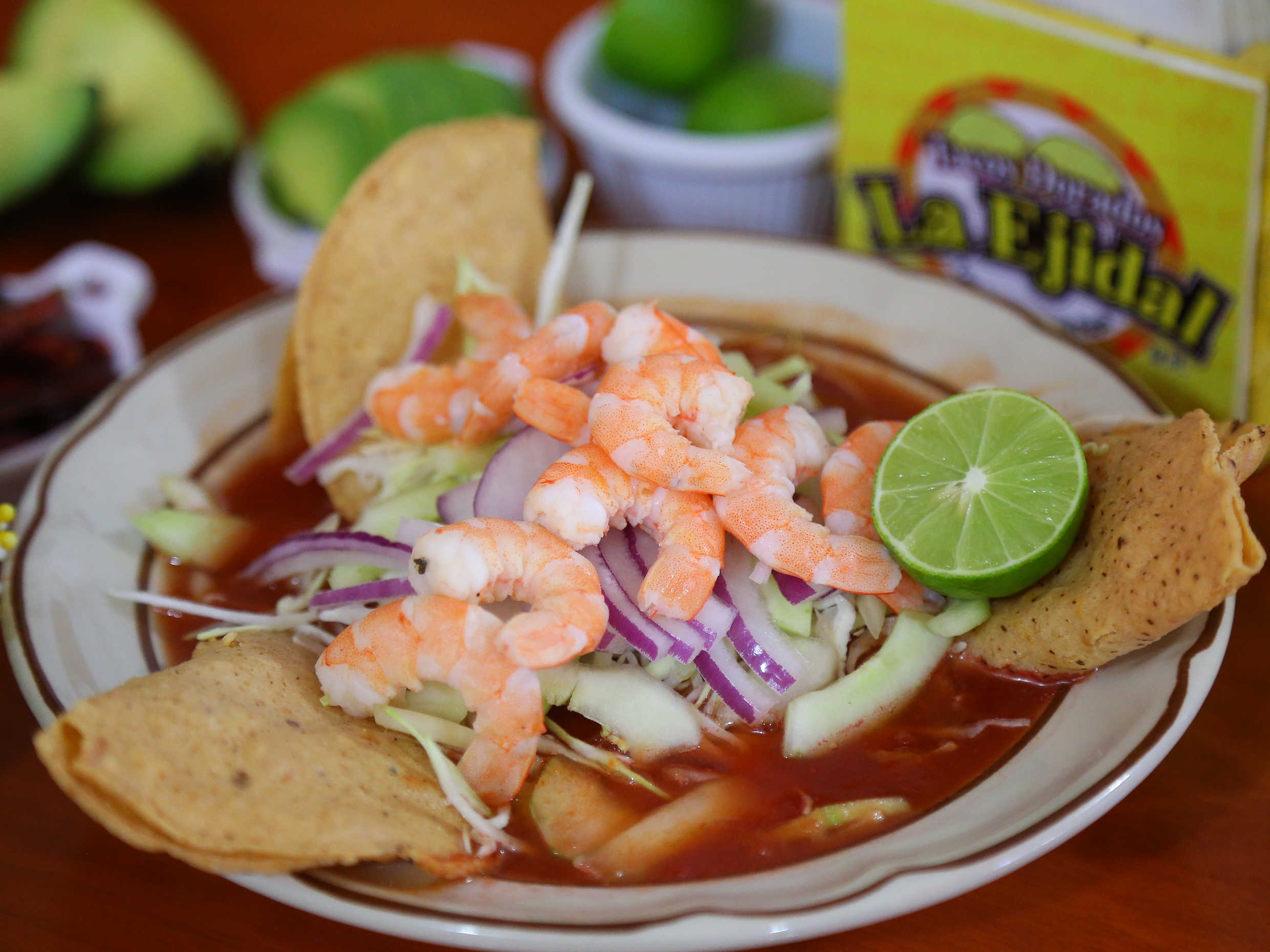 3 Tacos con Ceviche de Camarón Cocido