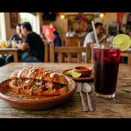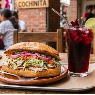 Torta de cochinita especial ahogada y Jamaica 500m