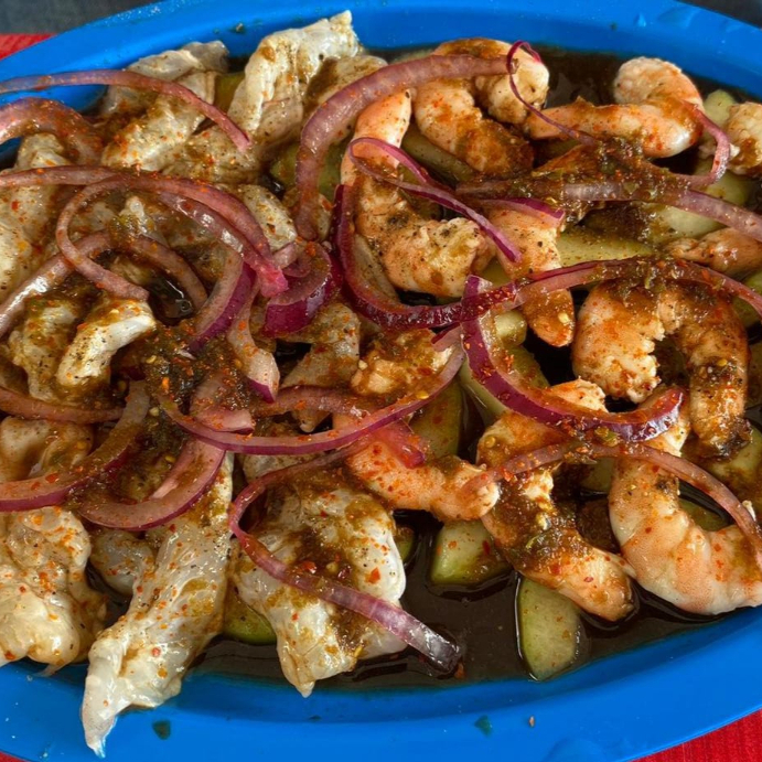CEVICHE DE CAMARÓN MIXTO MEDIO LITRO