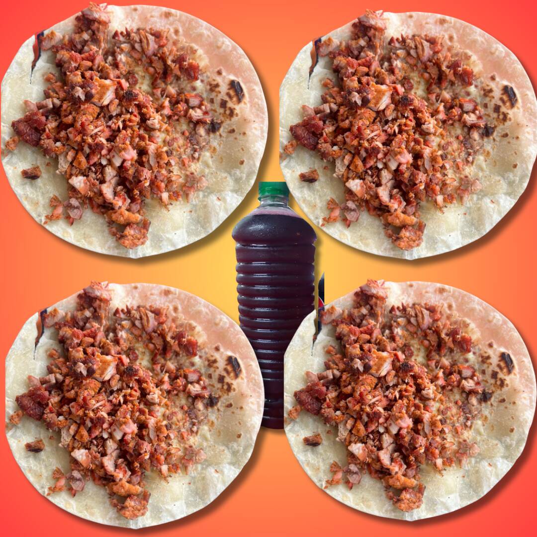 Taculichi de Adobada*1 + Tortilla con Asiento y Queso*2 + Taculichi De Adobada*2