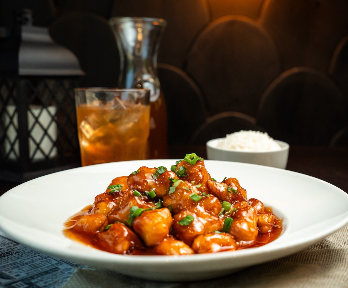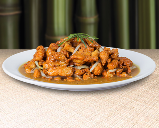 Pequeños filetes de pollo bañados con nuestra deliciosa salsa de naranja.