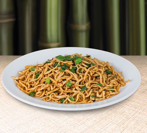 Suaves fideos de noodles con un toque de salsa de ostión y cebollita cambray.