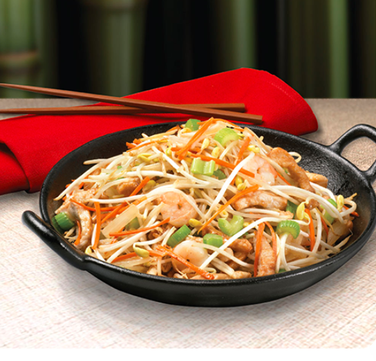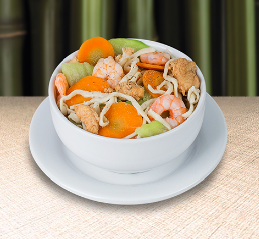 Combinación de verduras, con la base original de fideo frito, cerdo (55 g individual, 110 g para compartir), camarón (25 g individual, 50 g para compartir), pollo (60 g individual, 120 g para compartir).
