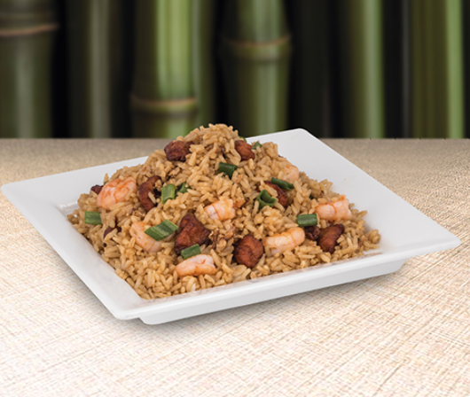 Cerdo (individual 90 g o para compartir 180 g) y camarón (individual 25 g o para compartir 50 g), elige tu salsa favorita (ostión, mango, langosta oriental, sriracha o cantonesa).