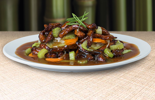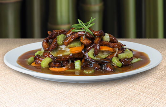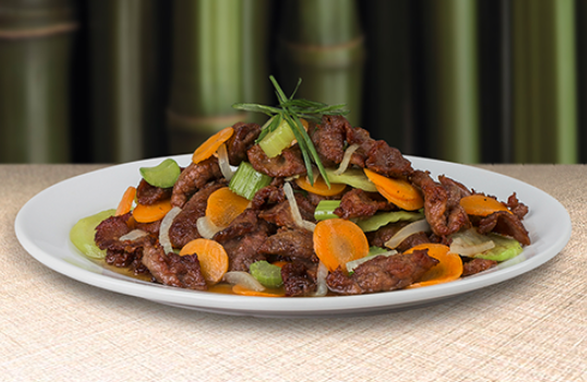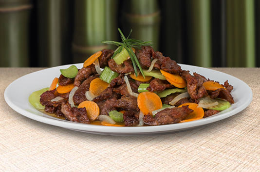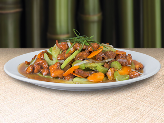 Clásico con salsa de ostión, zanahoria, cebolla, chayote y apio; en una cama de arroz blanco.