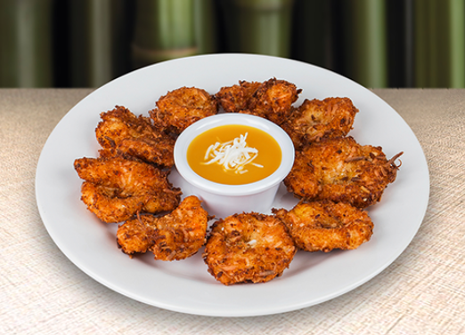 Crujientes bolitas de camarón acompañadas de un aderezo especial que resalta su sabor.