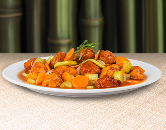 Divertidas bolitas de pollo bañadas con nuestra receta secreta de gravy agridulce.