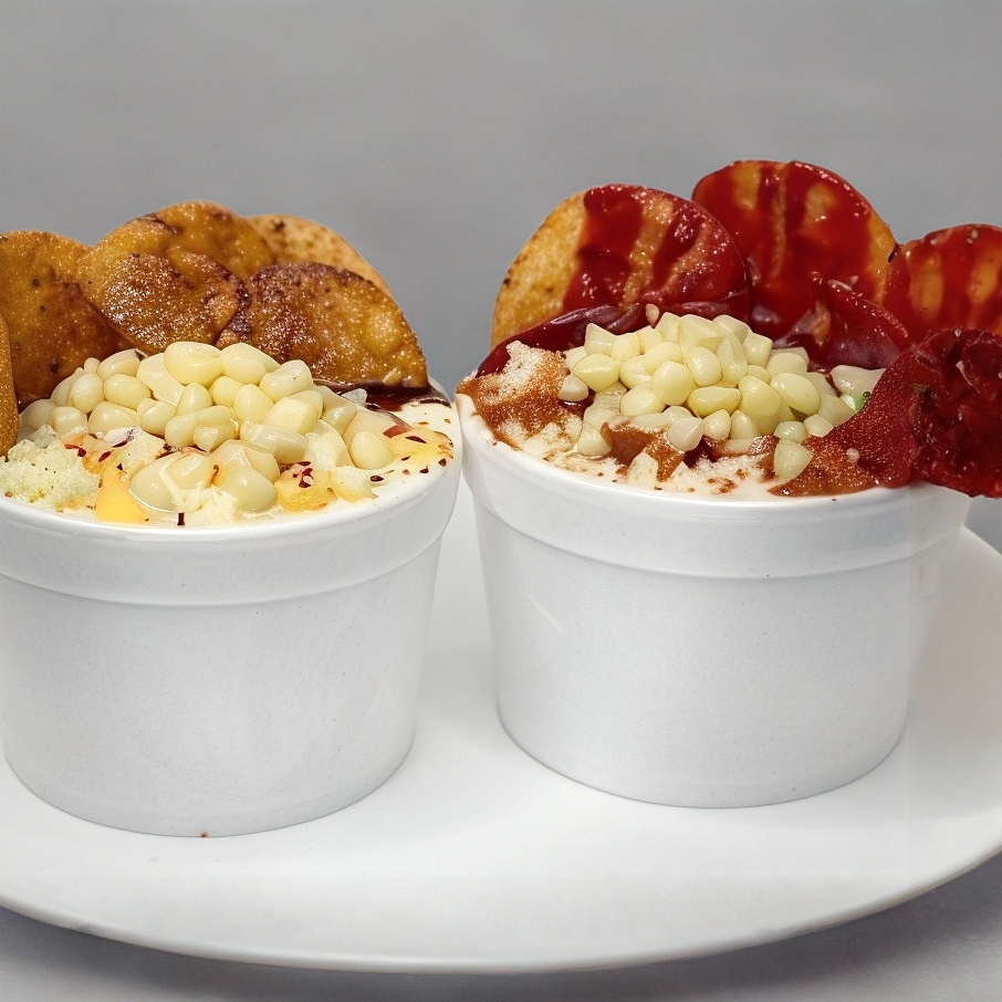 2 Vasos de medio litro (para dos personas), esquite, crema y queso ranchero. Incluye: Sabritas según disponibilidad (ya incluidas, no por separado), mayonesa al gusto.