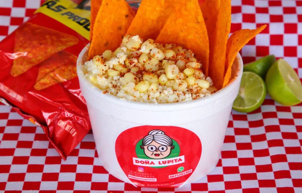 Tostitos con esquite, crema y queso. (Incluye aparte, su salsa, chile, limón y chamoy clásico