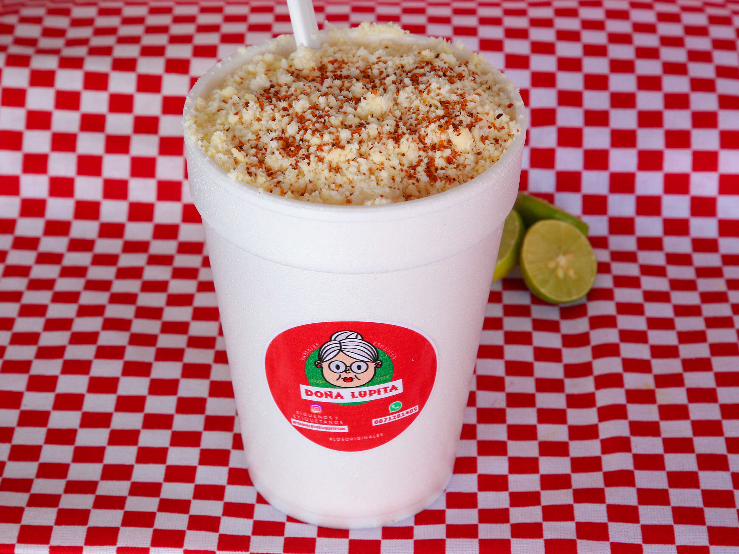 Delicioso esquite de 1 litro (crema, mayonesa, queso ranchero, chamoi, limón, guacamaya y chile en polvo) y envase térmico de 1 litro (para max 3 personas).