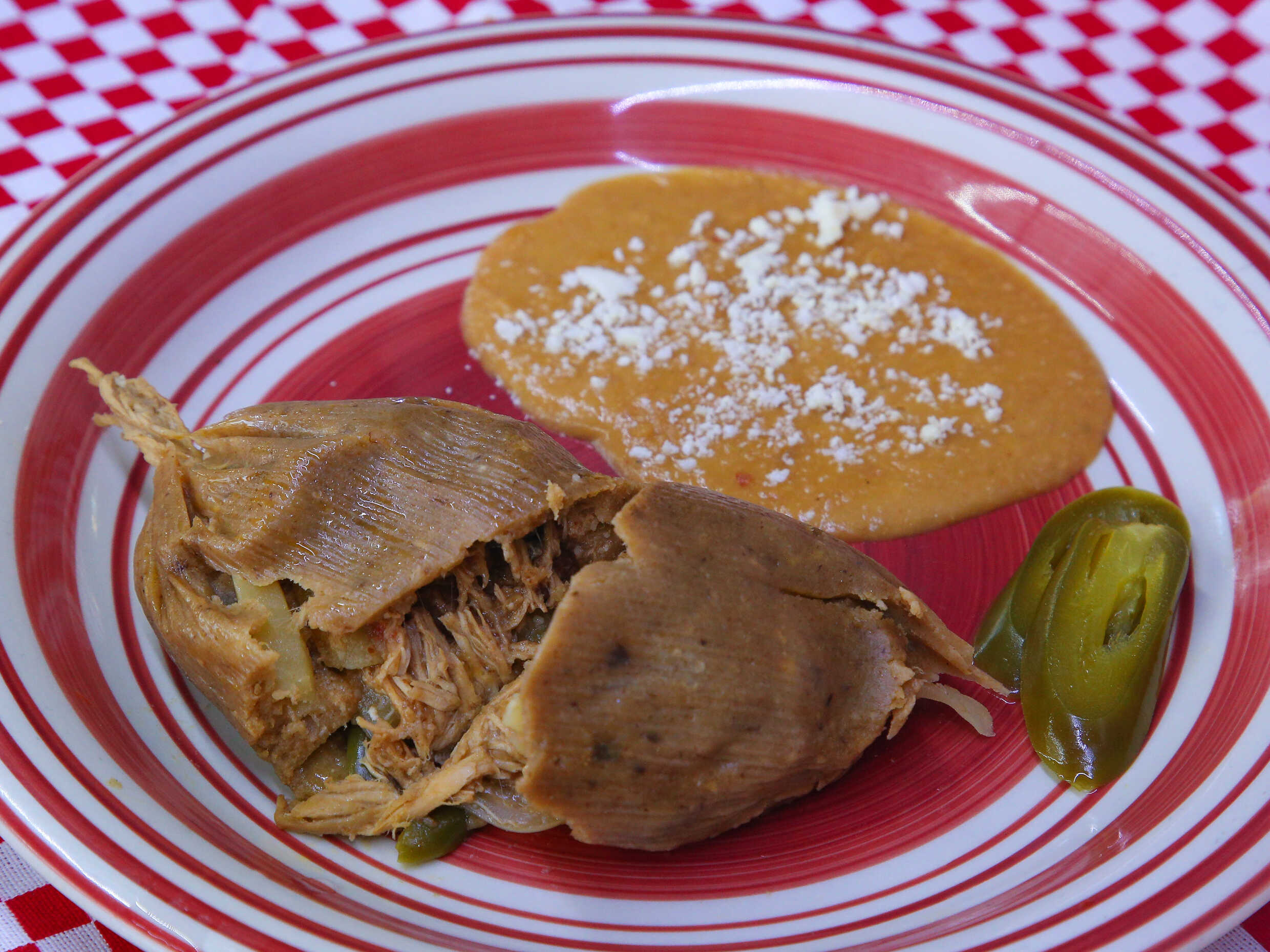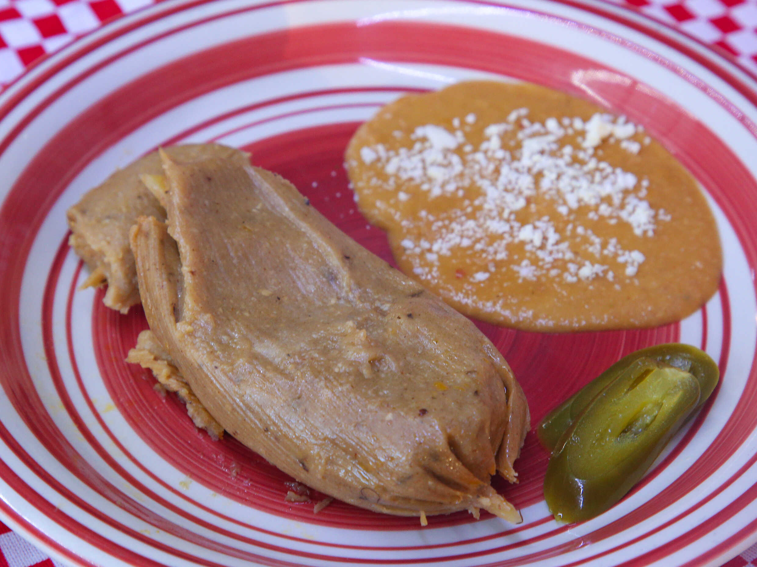 2 Tamales con frijoles puercos.