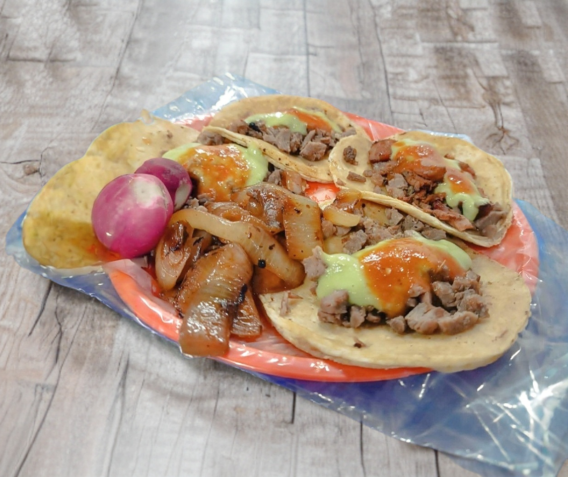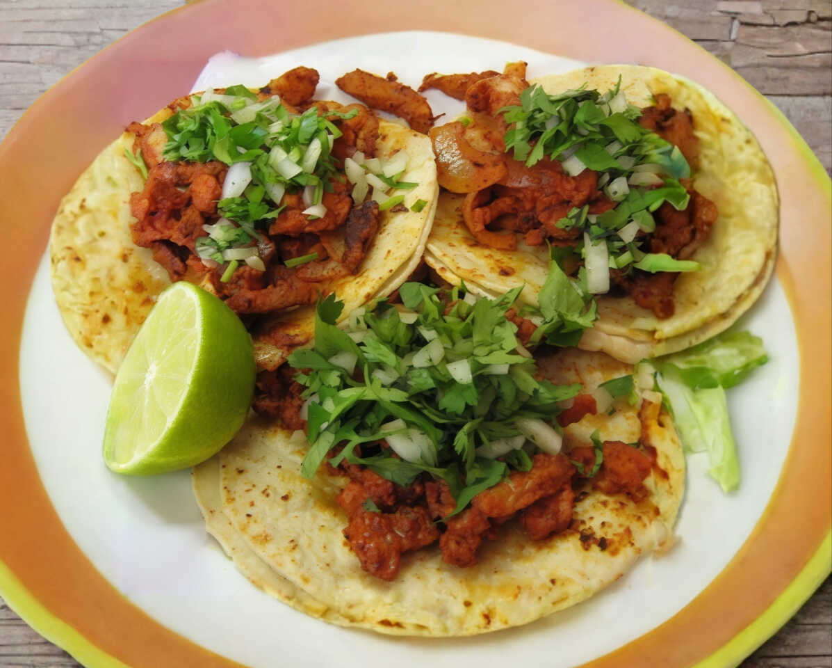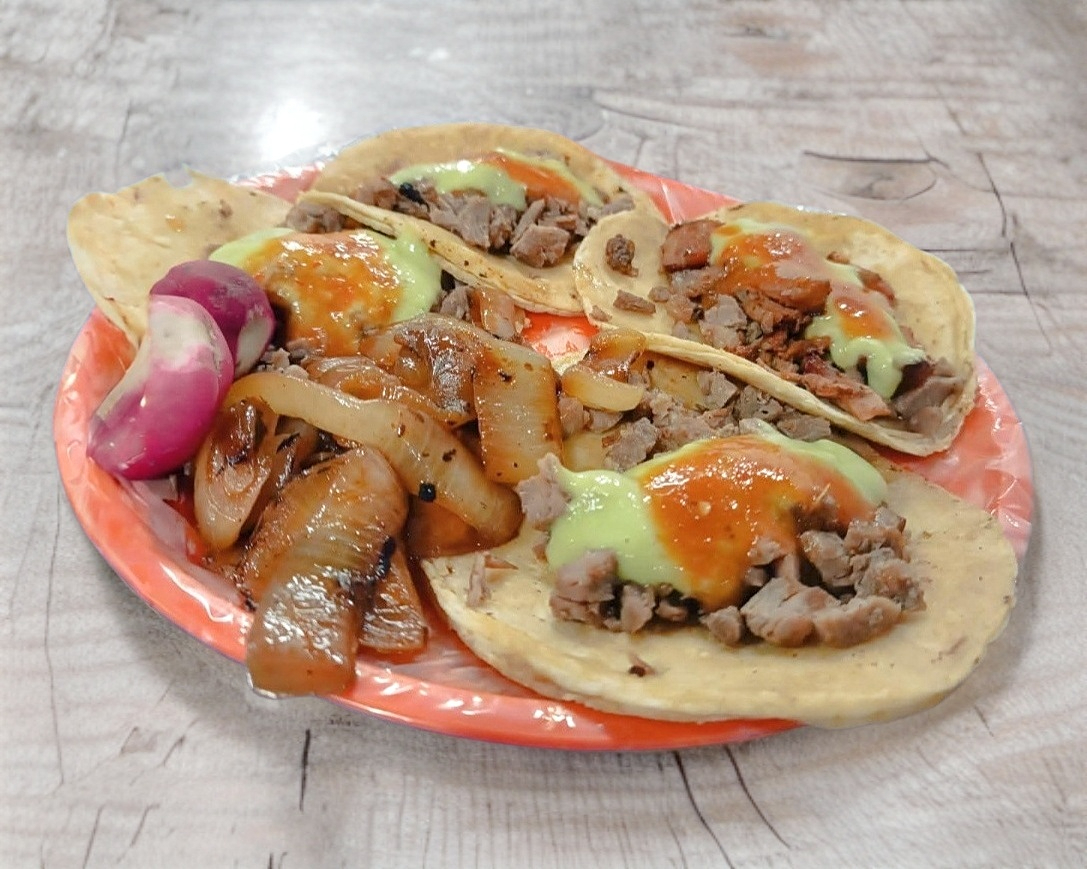 1 Quesadilla y 2 Tacos de Al Pastor