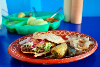 Quesadilla de Harina de Asada, Taco de Maíz de Asada y Agua de Sabor 500 ml.