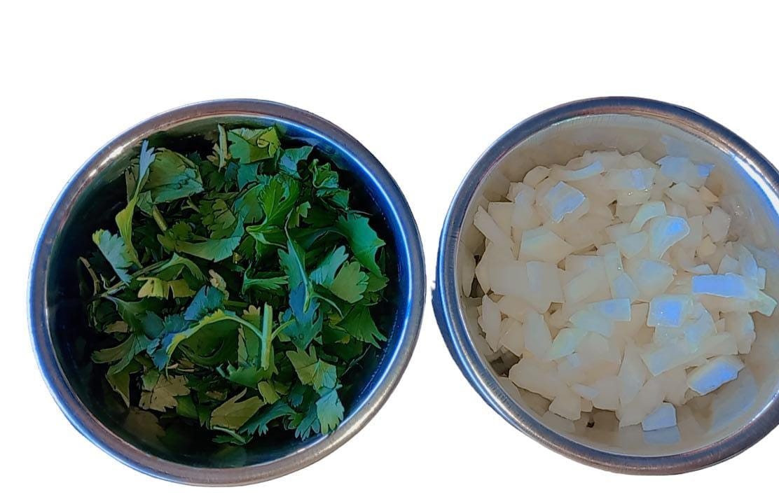 Porción de cebolla y cilantro.